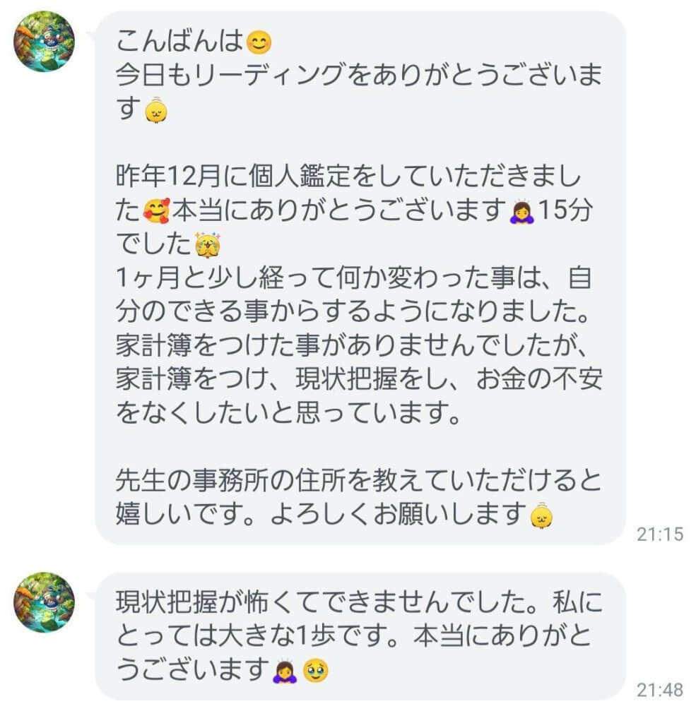 昨年12月に個人鑑定をしていただきまして本当にありがとうございます 15分でした
